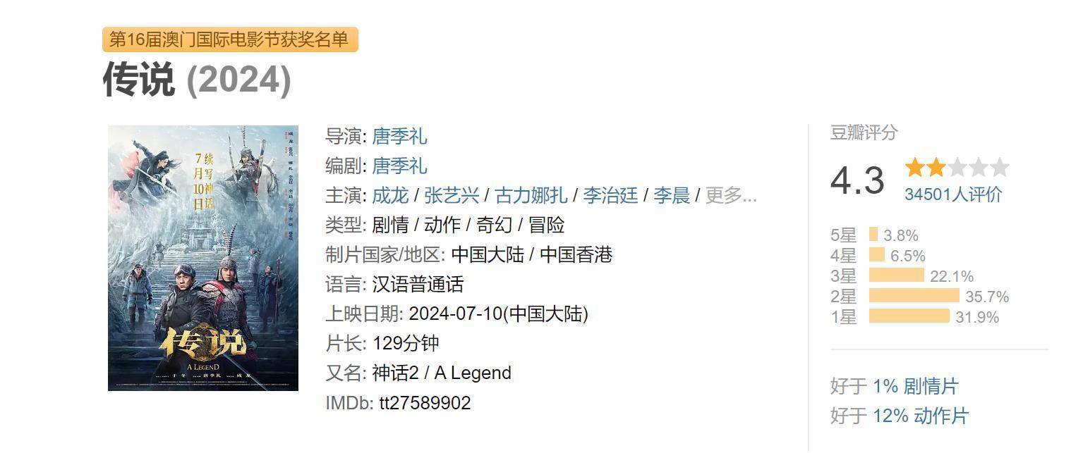 然后电影在春节档赞成了17天后,拿着豆瓣的6.2的评分,和不及4亿的票房颓落退场。