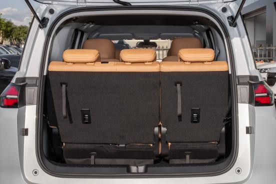 家用MPV对空间的需求较高,星光730 PHEV的车身尺寸参数为长4910mm、宽1850mm、高1770mm,轴距2910mm。以178cm身高的体验者为例,调治好前排驾驶坐姿后,若保证第二排乘客乘坐风物,第三排座椅坐垫虽较短,但腿部仍有接近三指的活动空间,头部空间约一拳。实测中,三名体型越过的成年东谈主乘坐第三排时会产生一定拥堵感,但可心仪短途乘坐需求;若乘坐的是体型娇小的女性或儿童,三名乘客同期乘坐也可保障基础风物性。第二排座椅中间过谈宽度豪阔,广博体型的乘客均可凯旋出入第三排。满员现象下,后备箱仍可容纳2至3个行李箱;将第三排座椅放倒后,可变成容积达1202升的规整储物空间,适配露营装备存放、袖珍货色运载等场景。