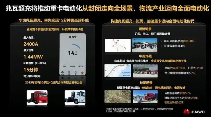 《华为发布业界首个全液冷兆瓦级超充,重卡 15 分钟充电到 90%》