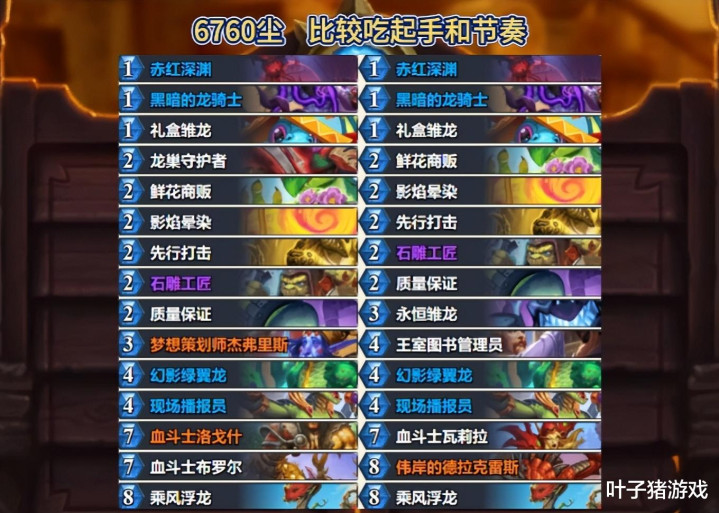 最初龙战的起手留牌很遍及,最好情况是组合性留牌,比如后手不错留两个鲜花商贩,前两个回合秩序放一个,相互不停BUFF,把场上的主动权抢得手,除非对面是天胡起手,要否则是很艰深掉。