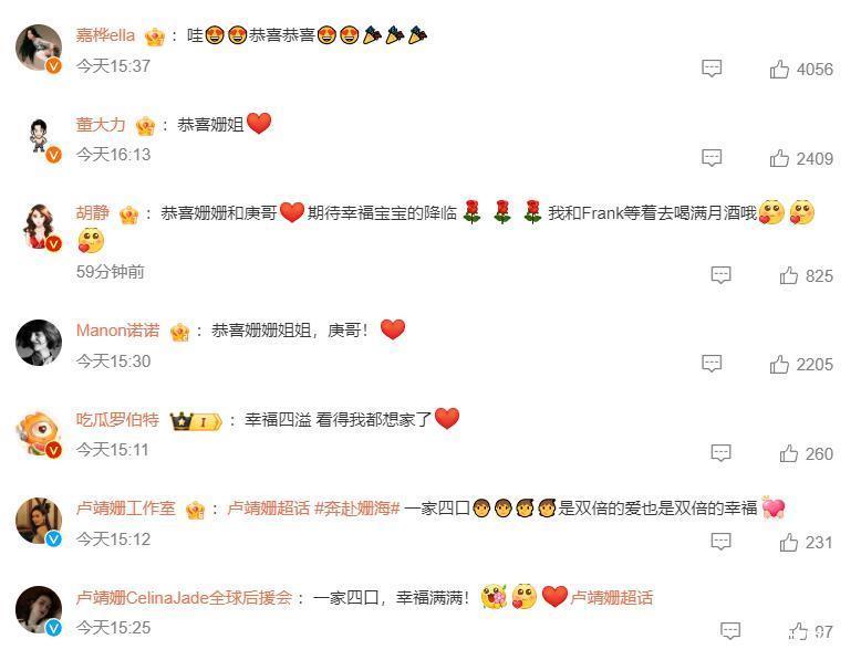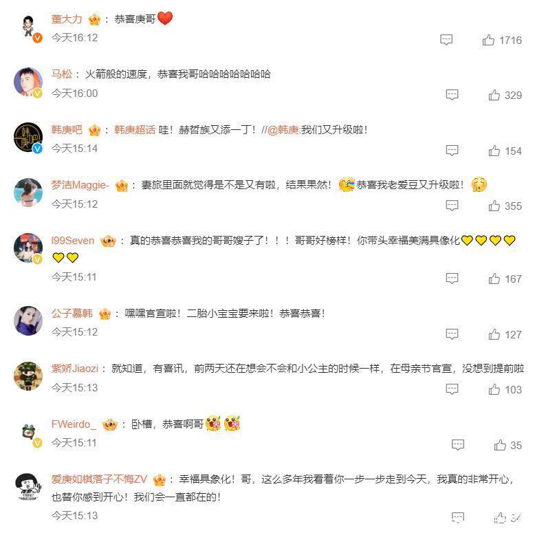 网友纷繁在挑剔区留言恭喜,还有女网友留言说要接好孕。